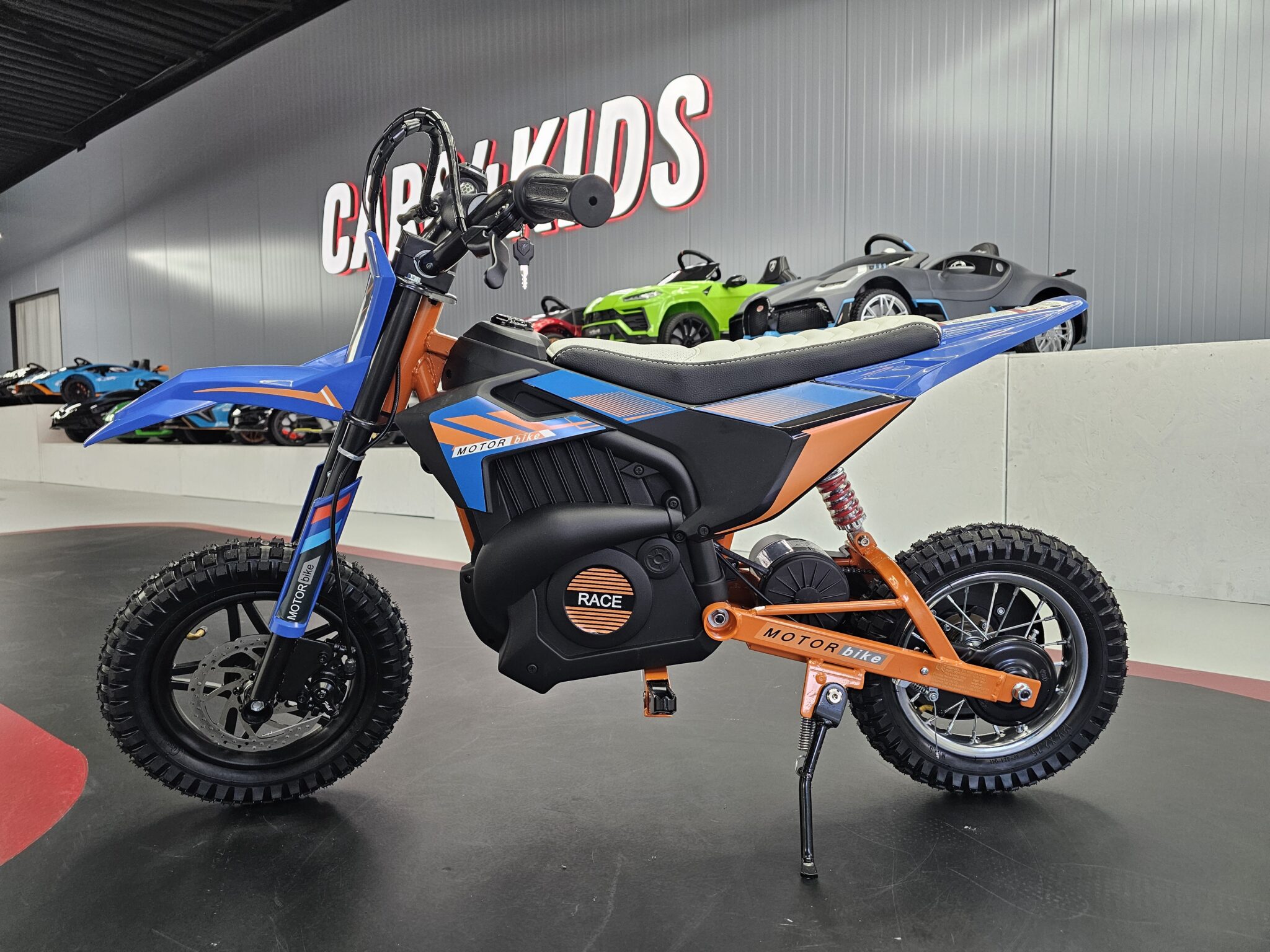 The X-Bike is a cool electric cross bike for children from 6 to 14 years old. With a powerful 250W motor, two speeds (14 & 22 km/h) and comfortable leather seat, it offers plenty of riding pleasure and safety. Ideal for young adventurers who want to cross under adult supervision.