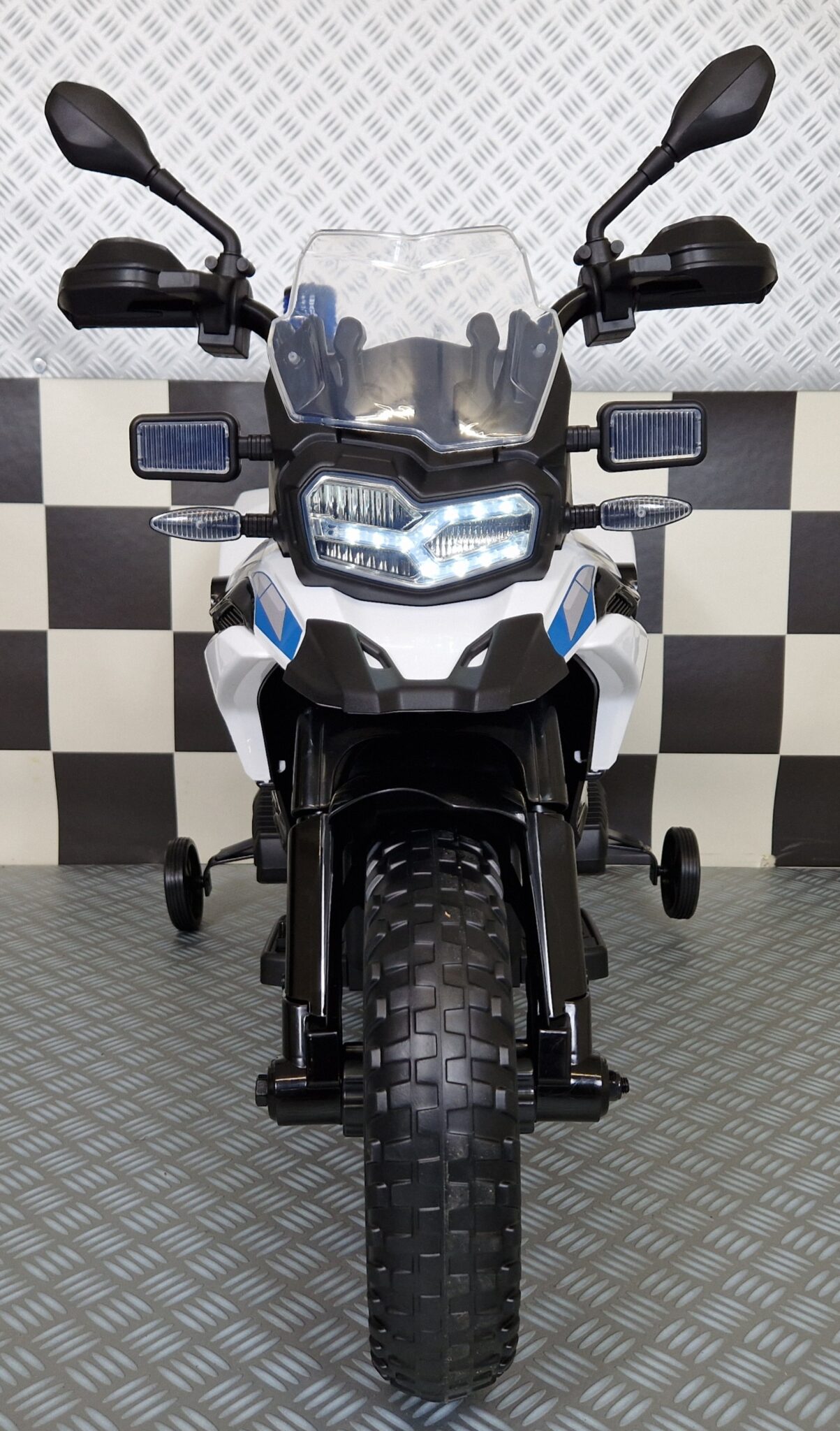 Cette moto de police BMW F850 pour enfants convient aux enfants à partir de 3 ans environ et est équipée d'un éclairage avant.