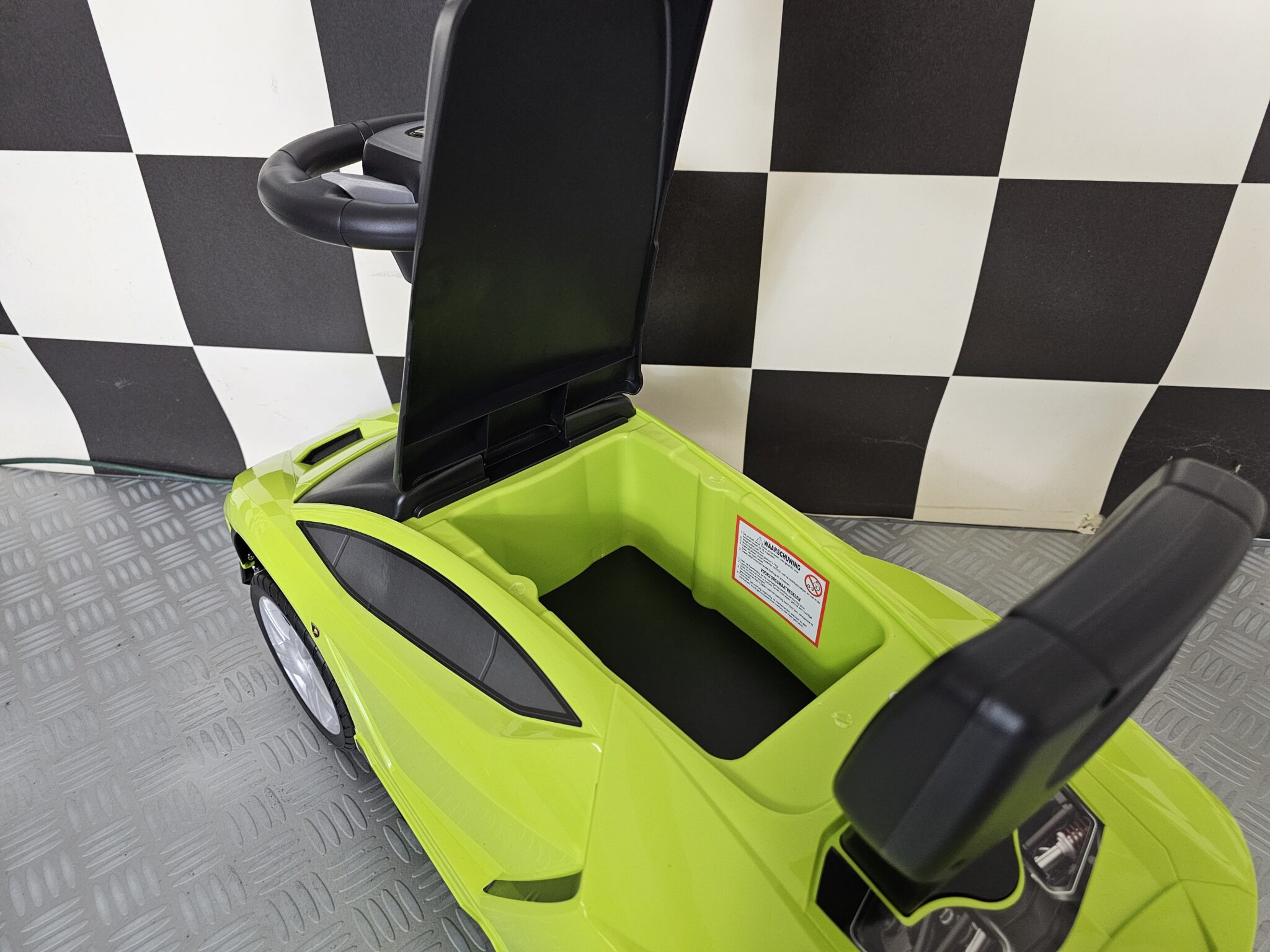 La voiture autoportée Lamborghini dispose d'un compartiment de rangement pour certaines choses.
